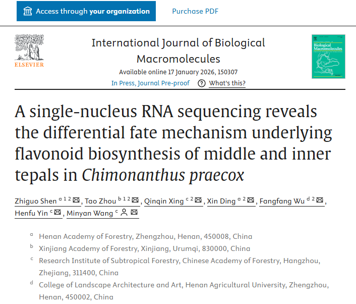 近日,我院林科院沈植国研究员团队联合新疆林科院、中国林科院亚林所等单位,在《International Journal of Biological Macromolecules》(中科院二区 TOP期刊 IF=8.5)发表研究成果,通过单细胞核 RNA 测序(snRNA-seq)技术,首次绘制蜡梅花被片单细胞转录组图谱,成功解码了蜡梅内被片红色、中被片黄色的分子调控机制,为植物花色育种提供了全新思路。