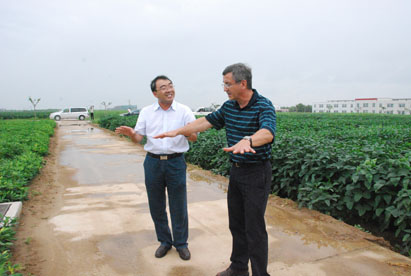 Chang Kow-ching教授在我院副院长张新友的陪同下,实地察看了棉花、玉米、花生、水稻等试验田,并参观了维特种子加工中心、棉花无土育苗中心等农业产业化区项目。