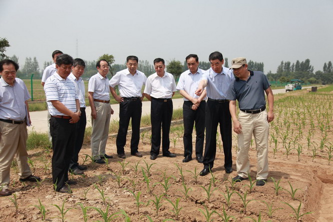 6月30日上午,王铁副省长在省政府副秘书长胡向阳、省农业厅厅长朱孟洲的陪同下,冒着酷暑到河南现代农业研究开发基地调研。