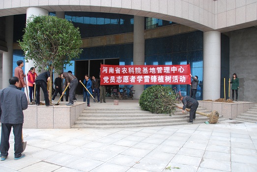3月23日,基地管理中心全体职工在中心领导班子的带领下,开展了党员志愿者学雷锋植树活动。