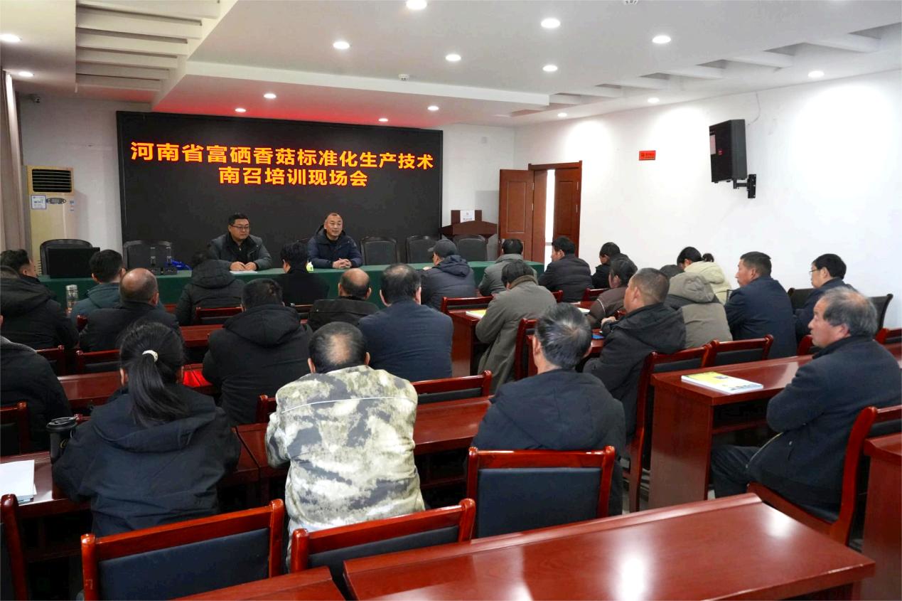 1月17日上午,南召县菌蚕中心与河南省农业科学院农产品质量安全研究所共同举办富硒香菇标准化生产技术培训班。王铁良、南召县蚕菌中心主任李德强与大家进行技术交流和指导。卢俊延和刘燕分享了种植富硒香菇的经历与体会。会后,大家对富硒香菇种植技术充满信心,有望将其打造成南召香菇的区域特色品牌。