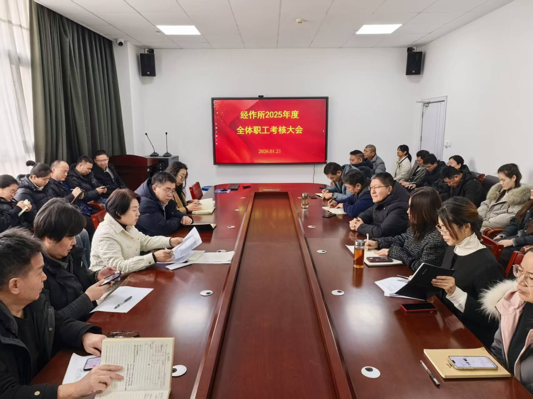 根据我院下发《豫农科[2025]104号》文件精神,为全面总结2025年度各项工作成效,客观评价职工履职表现,凝聚奋进力量谋划新一年发展蓝图,1月21日,经作所组织召开2025年度全体职工考核大会。会议严格按照院考核工作办法部署,全所职工逐一进行个人述职,全面展现了过去一年在科研创新、管理服务等岗位上的担当与作为。