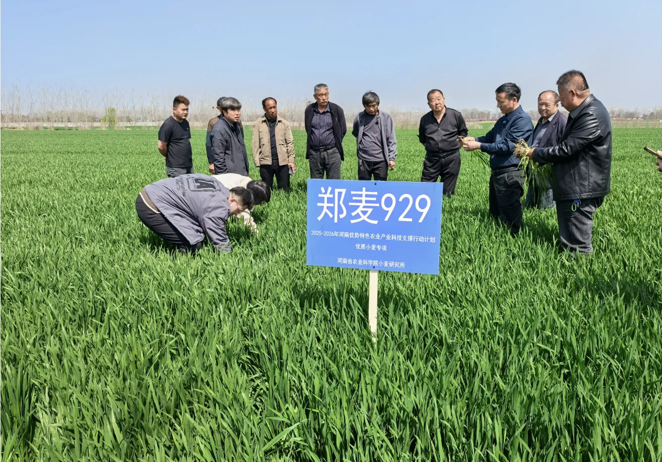 郑麦929是省农科院小麦所最新审定的优质馒头专用小麦新品种,具备矮秆、大穗、抗逆性强优势,具有千粒重高、容重高、产量高、优质馒头专用的“三高一优”特性。示范田内,该品种群体合理、苗齐苗壮、分蘖充足、长势均衡,抗倒性表现突出,为后期构建高产群体打下坚实基础。种粮大户纷纷表示,郑麦929田间表现稳健、暂无病害,对扩大种植规模、提升种植效益信心十足。