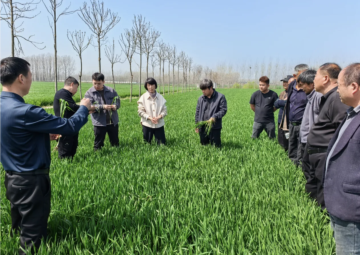 当前正值小麦生长关键期,苗情长势、肥水管理、病虫害防控直接影响最终产量。专家组一行实地查看1100亩郑麦929示范方与郑麦0926示范田,细致核查苗情长势、群体结构、土壤墒情及病虫草害发生情况,全面检查项目实施方案落实进度。结合田间实际表现,专家围绕肥水精准调控、促弱转壮、控旺防倒、绿色防控等关键环节,现场开具“技术良方”,提出针对性管理意见,助力农户科学管护。