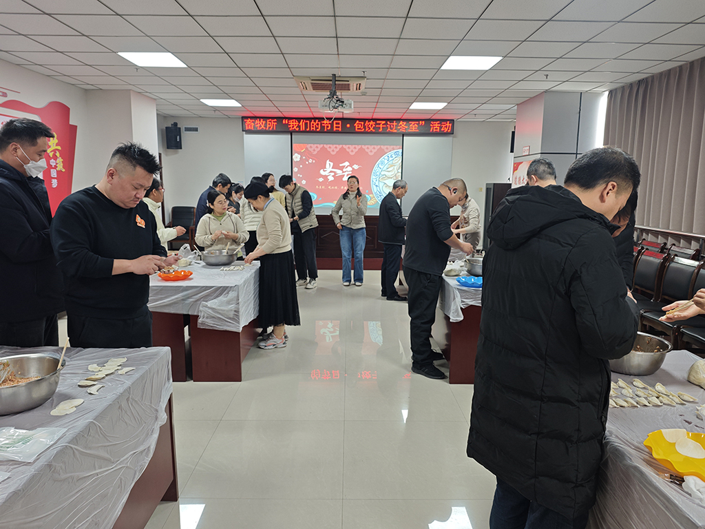 为弘扬中华优秀传统文化,丰富职工精神文化生活,增强职工团队的凝聚力和归属感,在冬至佳节来临之际,畜牧所工会举行“饺香四溢,情满冬至”包饺子活动,副所长张玉杨及各科室30余名职工齐聚一堂,共迎温情冬至。